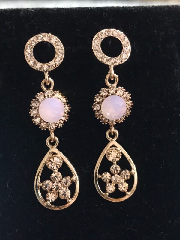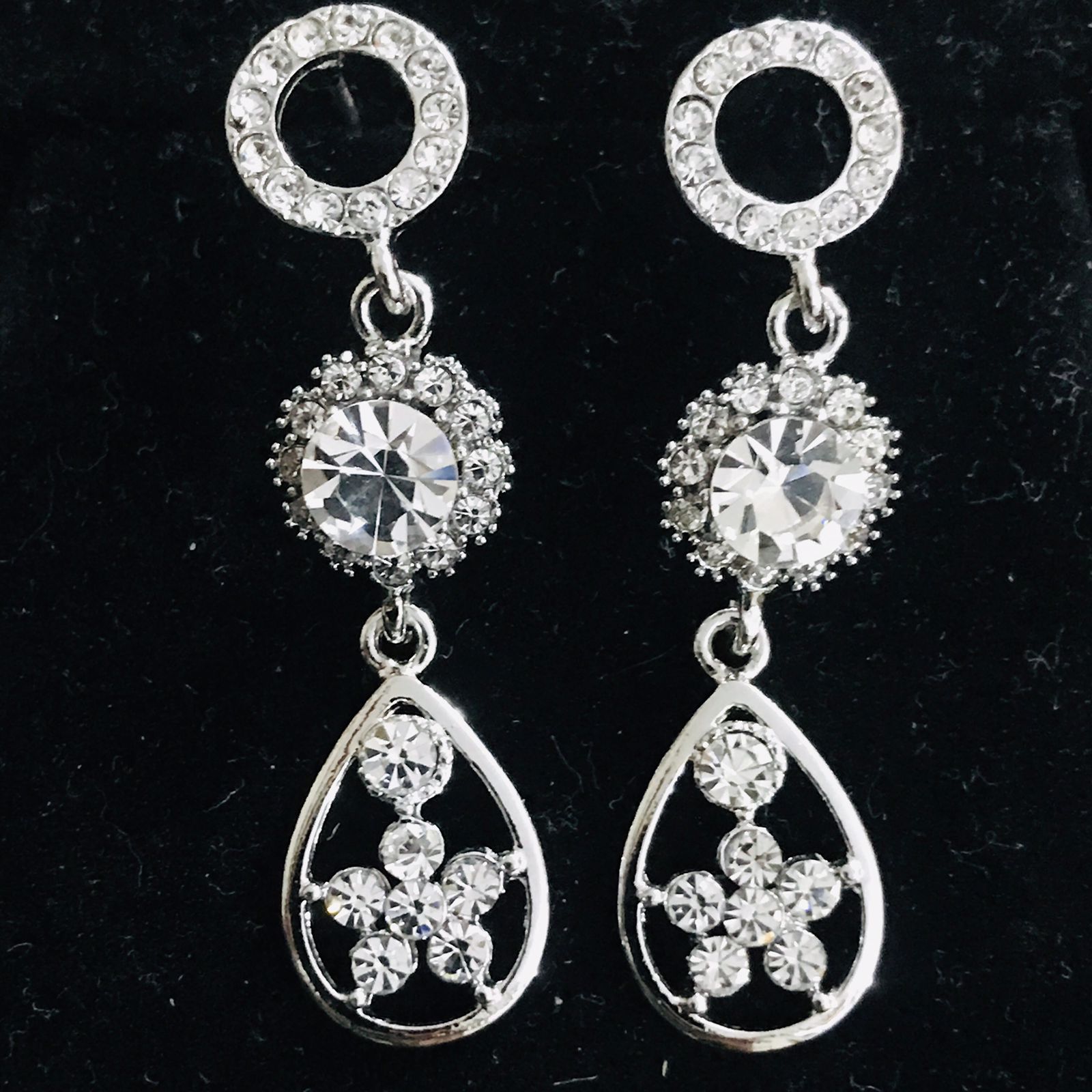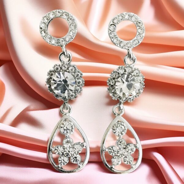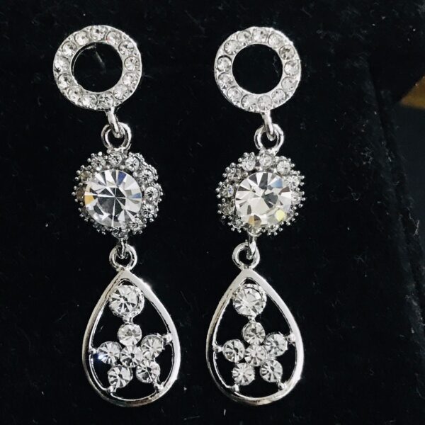 These crystal drop earrings feature an elegant and timeless design, adorned with sparkling crystals that add a touch of sophistication. With a secure post-back closure, they are both stylish and practical, making them suitable for any occasion, whether casual or formal.