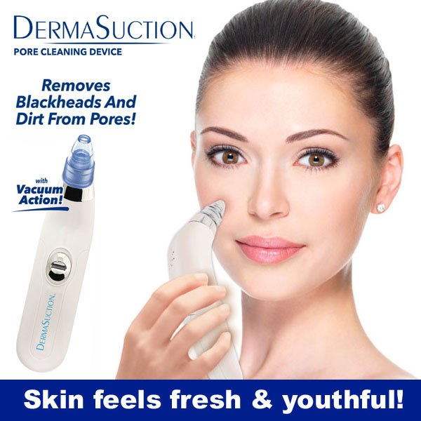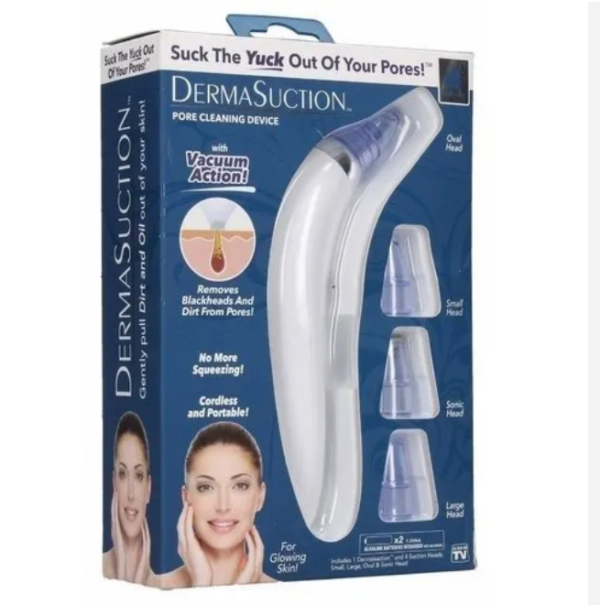 DermaSuction removes blackheads and impurities with its gentle vacuum technology. With 4 interchangeable heads and two power settings, it provides deep, effective cleaning for all skin types. Waterproof and easy to use, it reveals clear, youthful skin effortlessly.