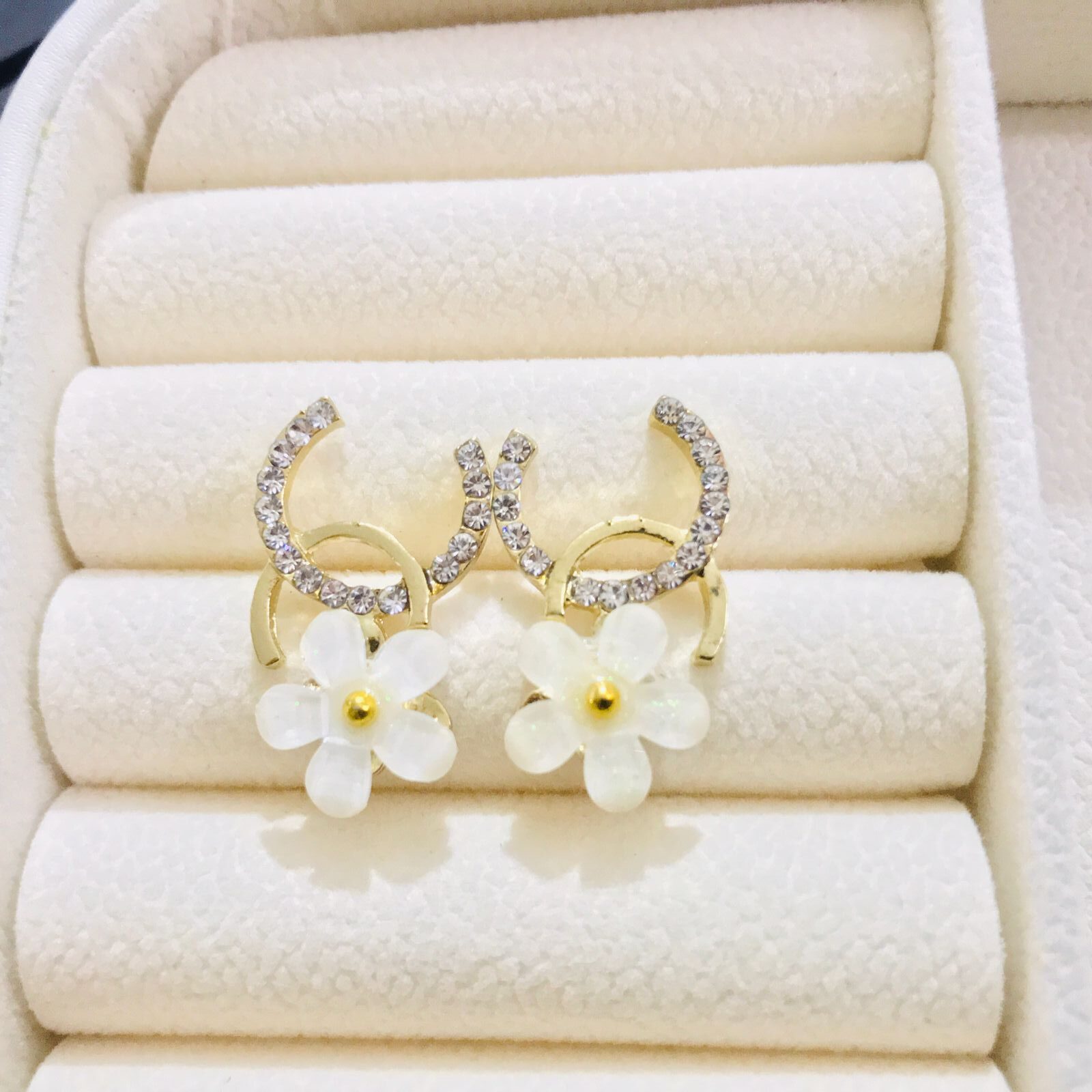 These exquisite double C earrings are a perfect blend of elegance and sophistication. The classic C motif is beautifully adorned with sparkling cubic zirconia stones, adding a touch of glamour. The delicate white floral accents enhance the earrings’ feminine appeal, making them a versatile accessory for any occasion.