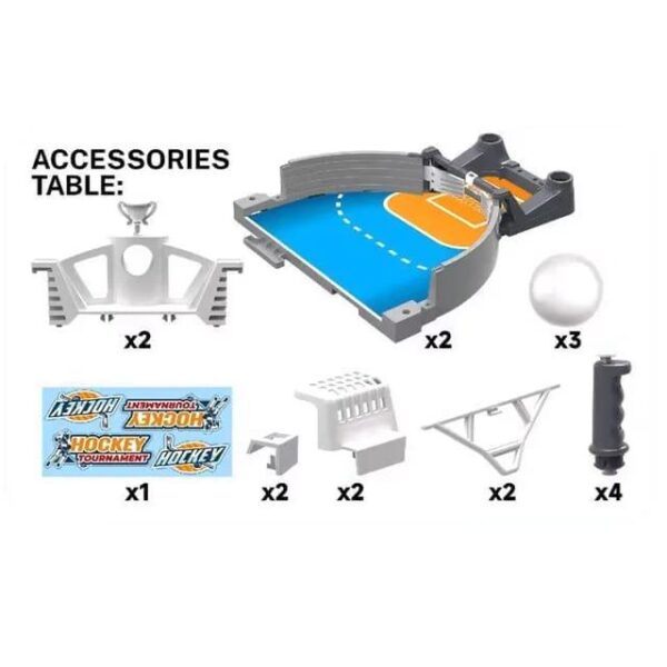 -The game comes with 2 hockey pitches, 3 football balls, 4 control pads, 2 goal nets and 2 fences to secure the football field