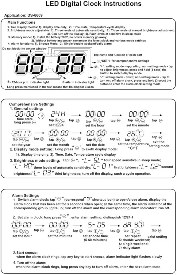 This Korean-style digital wall clock is a 24cm square, plastic timepiece with an antique look. It offers practical features like a mute button and a nightlight function, making it a stylish and functional addition to any living room.