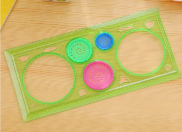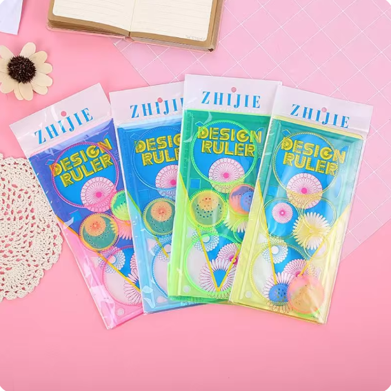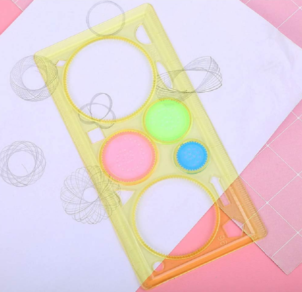 The ruler features a variety of geometric shapes and patterns that can be used to create intricate and unique designs. Simply place the ruler on a piece of paper and trace the shapes to create beautiful spirograph art.