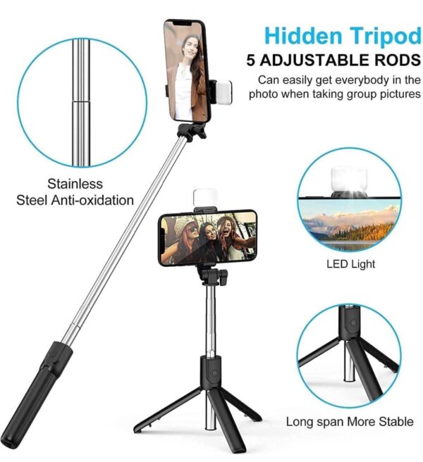 R1S Long Bluetooth Selfie Sticks With Selfie Light