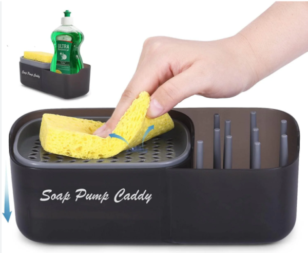 • Integrated Design: Combines a dish soap dispenser with a sponge holder and cleaning tool storage box.